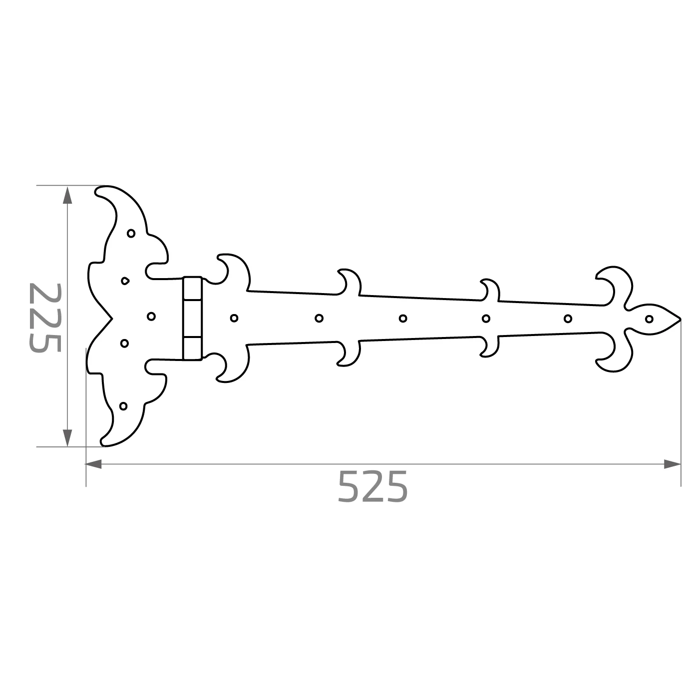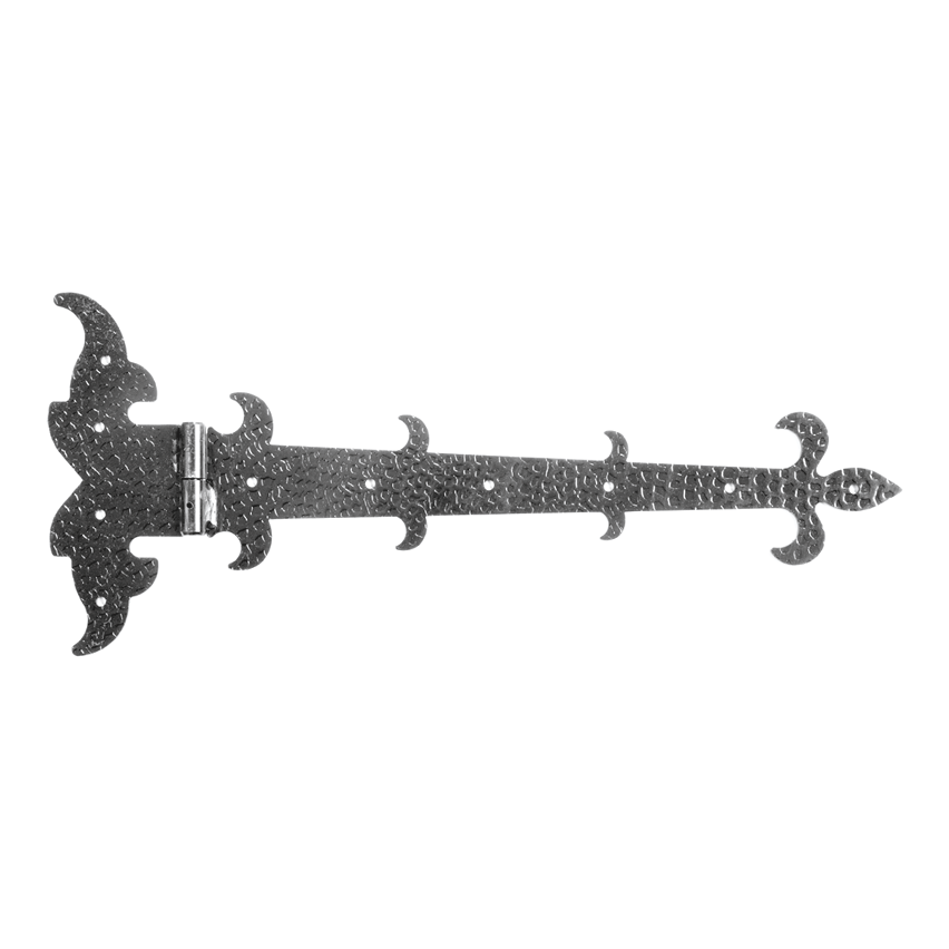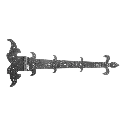 Dekorativer Bandscharnierlinker der Marke Postal ist ein solides Beschlagelement aus Stahl für die Montage von Toren, Gartentüren und Holztüren. Dank des dekorativen Designs mit Lilienmotiv und gehämmerter Oberflächenstruktur verleiht er Zäunen und Toren einen stilvollen, rustikalen Charakter — ideal für Projekte, bei denen der Kunde traditionelle Ästhetik erwartet.
