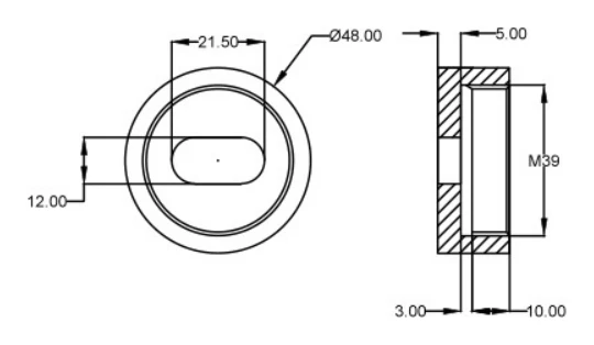 - Tiefe des zylindrischen Teils: 10 mm