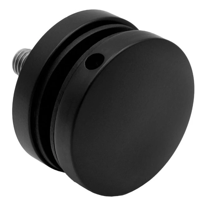 Punkthalter für Glas (Rotula) mit einem Durchmesser von 50 mm in eleganter schwarz matter Ausführung ist ein professionelles Befestigungselement zur Montage von Glasscheiben auf ebenen Oberflächen. Aus rostfreiem Stahl AISI 304 gefertigt und pulverbeschichtet, verbindet er hohe Festigkeit mit moderner Ästhetik – bewährt sich sowohl bei Innen- als auch Außenanwendungen.
