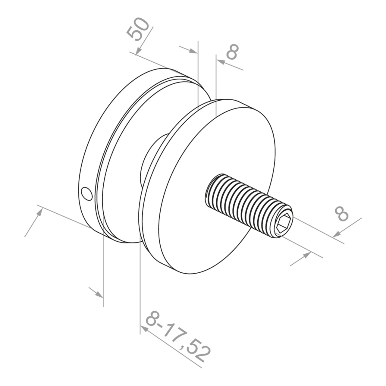 Punkthalter für Glas 8-17,52 mm fi 50/8/M8x45 AISI 304 flaches System Satin