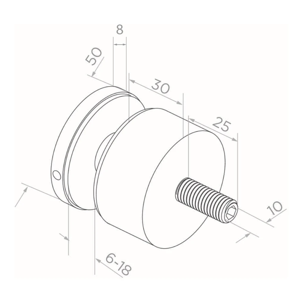 Punkthalter für Glas fi 50 mm AISI 304 Satin – Gewinde M10