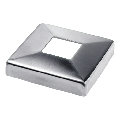Die Rosette ist für Edelstahlgeländersysteme auf Basis quadratischer Profile 40×40 mm bestimmt. Ideal geeignet für die Montage von Glas- und Stabgeländern in Treppenhäusern, auf Balkonen, Terrassen und Galerien. Verdeckt die Durchgangsstelle des Pfostens durch den Boden oder Konstruktionselemente und sorgt für ein sauberes, ordentliches Finish.