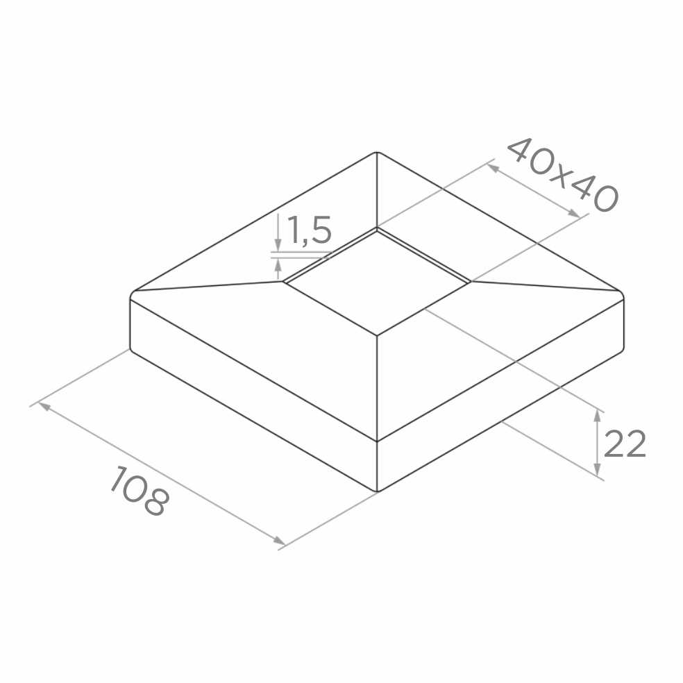 Durch die präzise Anpassung an das quadratische Profil 40×40 mm lässt sich die Abdeckung schnell und sicher montieren und eliminiert unschöne Spalten rund um die Pfosten. Es ist ein kleines, aber entscheidendes Element für den finalen visuellen Effekt der gesamten Geländerkonstruktion — besonders wichtig bei repräsentativen Objekten, in Hotels, Bürogebäuden und Wohnbauten.