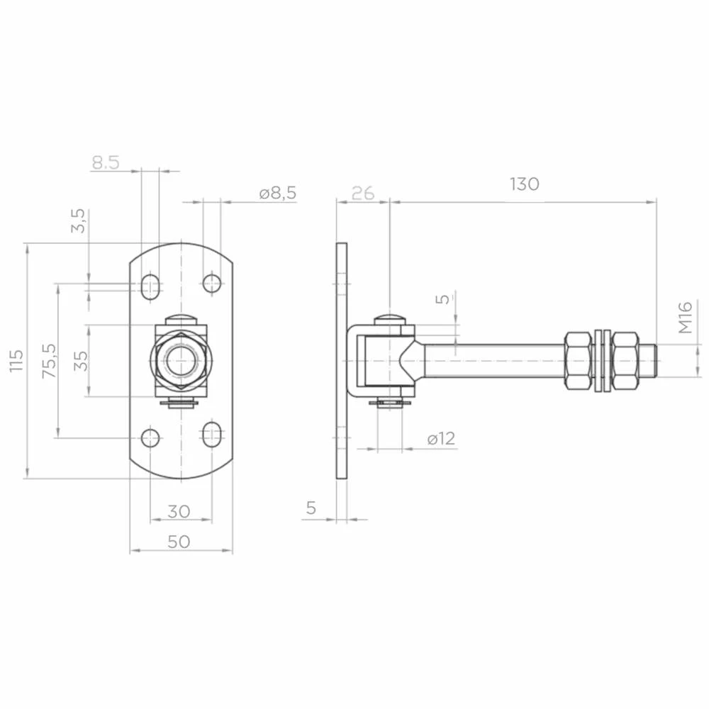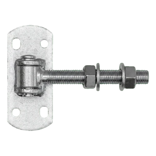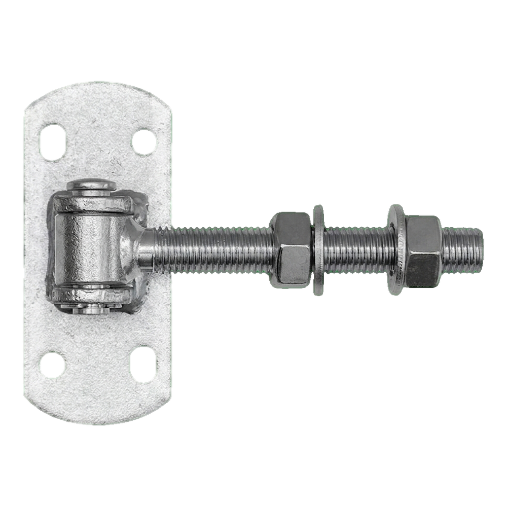 Regulierbares Scharnier M16 mit Schild 115×50 mm ist ein robustes Beschlagelement für die Montage von Torflügeln und Pforten. Dank des M16-Gewindes mit Einstellmutter ermöglicht es eine präzise Einstellung der Flügelposition sowohl bei der Montage als auch während des späteren Betriebs – z.B. nach Durchhängen der Konstruktion oder unter Einfluss extremer Temperaturen.