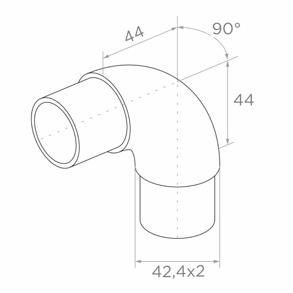 Sanfter geklebter Bogen 90° ist ein robuster Geländerverbinder aus Edelstahl, entwickelt für die Verbindung von Rohren mit einem Durchmesser von 42,4 mm. Dank des sanft gerundeten Biegeprofils verleiht das Element dem Geländer ein elegantes, modernes Aussehen und gewährleistet gleichzeitig eine solide und dauerhafte Verbindung. Ideale Lösung für Installationsunternehmen, die Innen- und Außengeländerprojekte realisieren — die geklebte Montage eliminiert die Notwendigkeit des Schweißens, was die Realisierung erheblich beschleunigt und die unversehrte Oberflächenveredelung erhält.