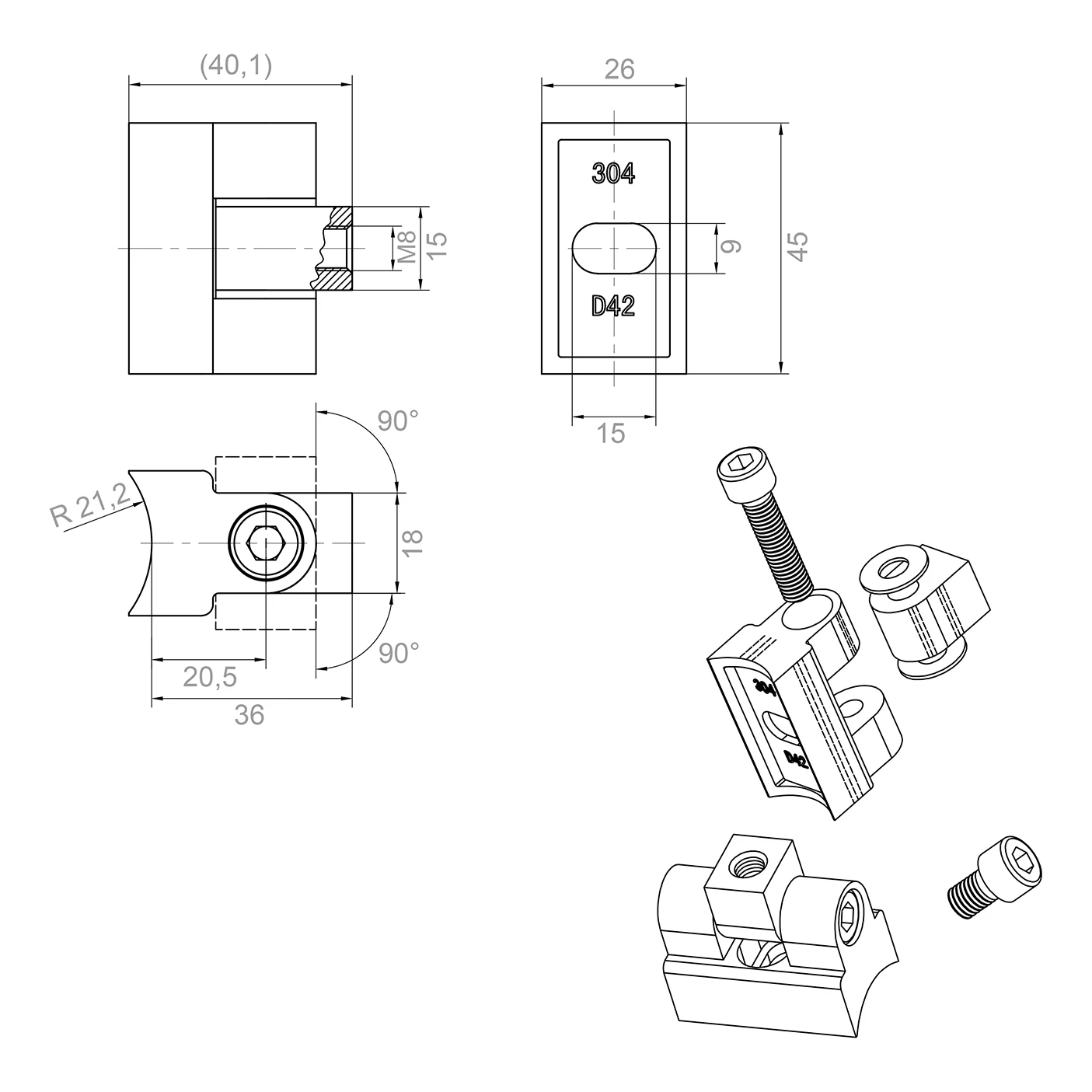 - Rohrdurchmesser: 42,4 mm (R 21,2 mm)