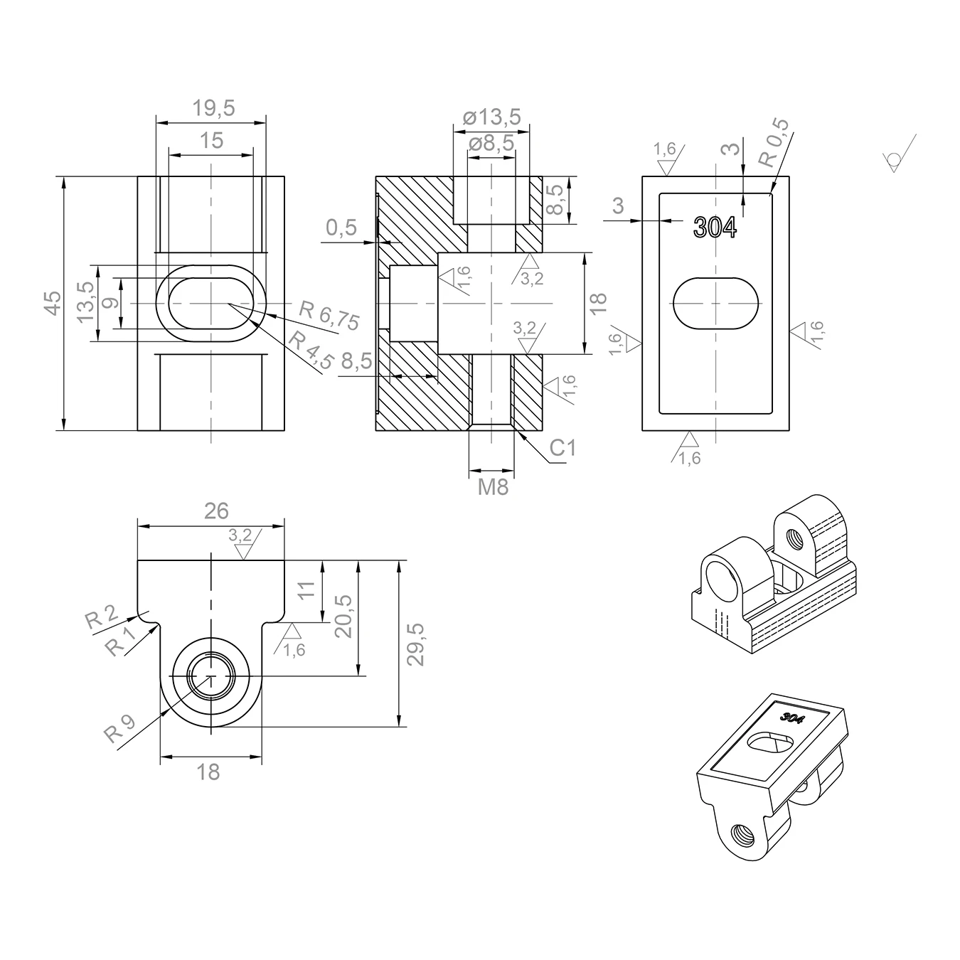 - Durchmesser der Bolzenbohrung: ø 8,5 mm