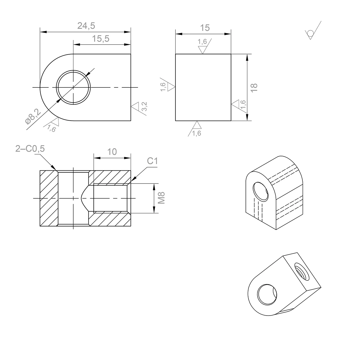 - Durchmesser der Durchgangsbohrung des Verbinders: ø 8,2 mm
