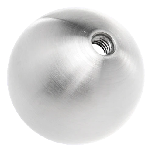 Die Kugel ist innen hohl, wodurch sie trotz solider Konstruktion mit 2 mm Wandstärke leicht bleibt (0,23 kg). Die satinierte Oberfläche harmoniert perfekt mit typischen Edelstahlgeländerelementen — Pfosten, Handläufen und Verbindern. Das Produkt eignet sich ideal als dekorativer Abschluss für Geländerpfosten oder Handläufe und wertet die gesamte Installation ästhetisch auf.