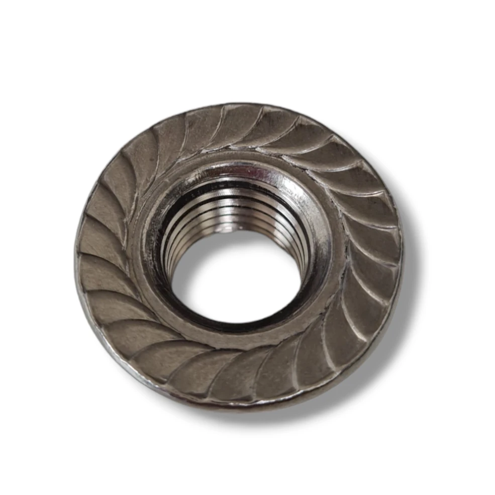 DIN 6923 Sechskant-Flanschmutter mit Kerbflansch M10 aus Edelstahl A2 1.4301, für Photovoltaikanlagen.