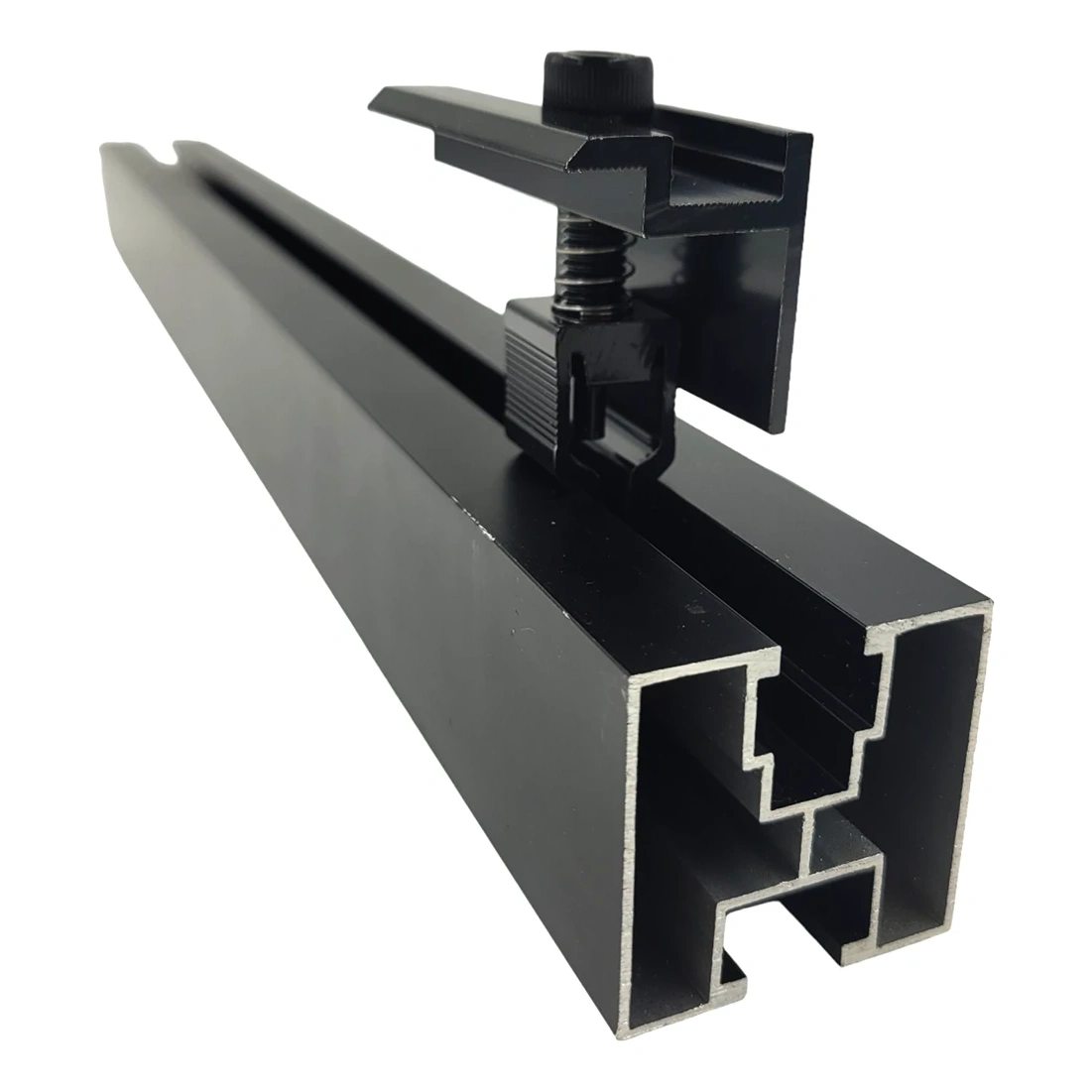 Die Klammer ist aus Aluminium 6060 gefertigt und mit einer schwarzen Pulverbeschichtung versehen, was eine hohe Korrosionsbeständigkeit und ein ästhetisches Erscheinungsbild gewährleistet, das zu dunklen PV-Modulen passt. Die schwarze Ausführung wird von Installateuren, die auf ein einheitliches Erscheinungsbild der gesamten Anlage Wert legen, immer häufiger gewählt.