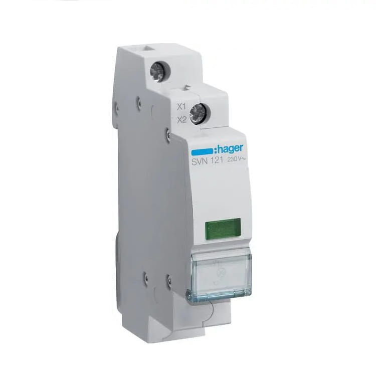 Signalleuchte LED grün 230VAC SVN121 HAGER zeigt durch eine grüne LED das Vorhandensein von Spannung in den einzelnen Phasen des Stromnetzes an.