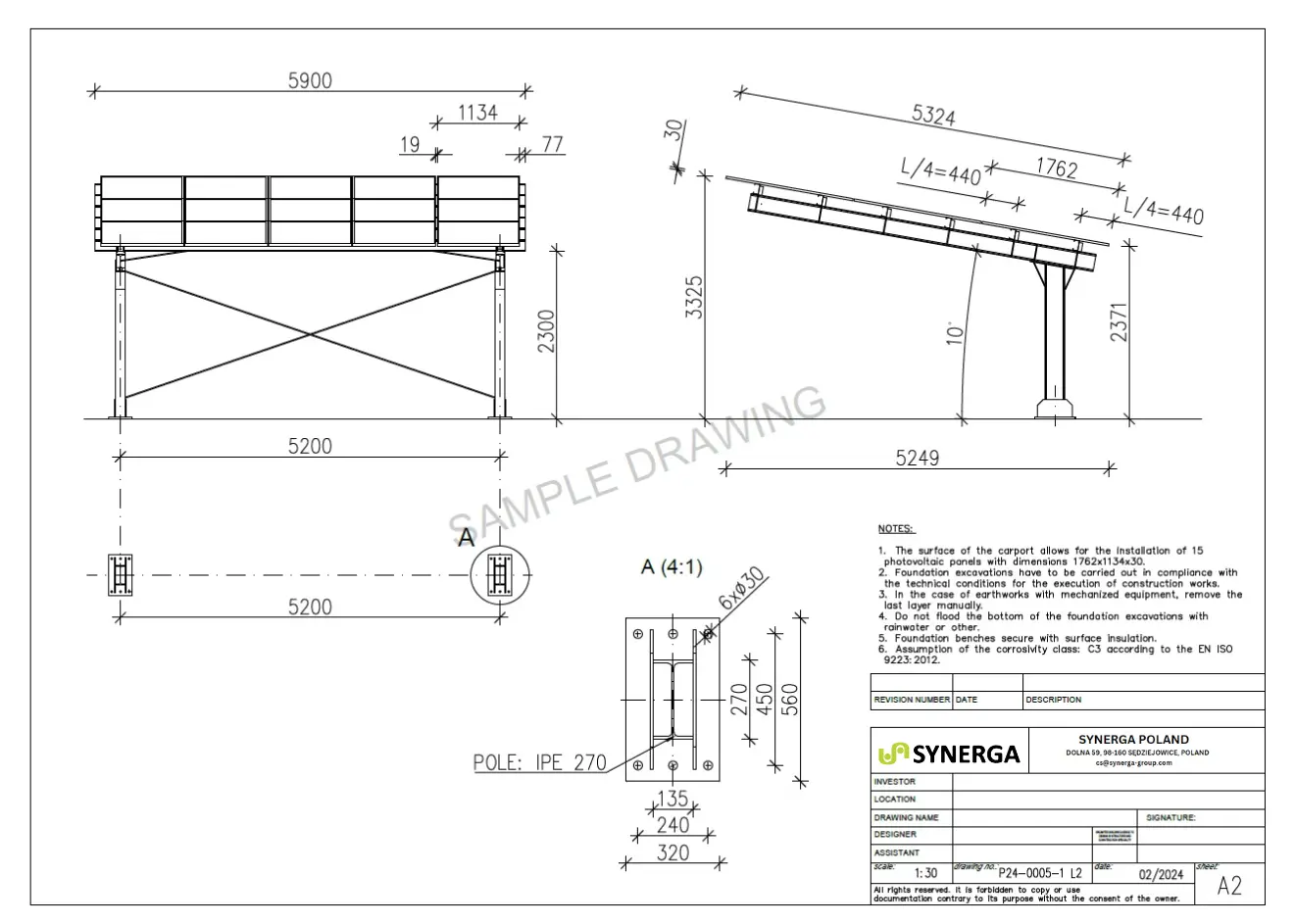 - Das Angebot gilt für die Konstruktion selbst, ohne Photovoltaik-Paneele, Stoßfänger und Abdichtungssystem und Dachrinne