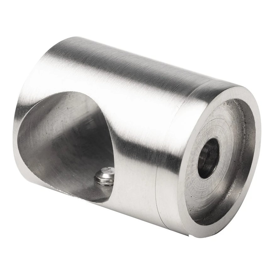 Dank der Durchführungskonstruktion verläuft der Stab komplett durch den Halter, was eine stabile und sichere Führung des Elements gewährleistet — die Haltbarkeit der Verbindung wird im Vergleich zu Klemmhaltern erheblich verbessert. Die Montage erfolgt mittels Gewinde M6 an der ebenen Oberfläche, wodurch sich das Element sowohl für Geländerpfosten als auch für die Befestigung an Wänden, Arbeitsplatten oder Glaspaneelen hervorragend eignet.
