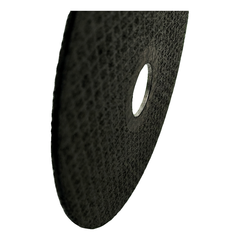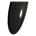 Die Scheibe verfügt über eine Verstärkung aus Fasernetz, die auf der Rückseite sichtbar ist. Diese verhindert das Zerbrechen der Scheibe bei hohen Drehzahlen und gewährleistet sicheren Einsatz auch bei intensiver Seitenbelastung. Die Bindung aus Kunstharzen sorgt für Beständigkeit gegen hohe Temperaturen während des Schneidens, und die Korund-Schleifkörner legen sich selbstständig frei, wenn sie sich abnutzen – wodurch die konstante Schneidaggression über die gesamte Betriebsdauer erhalten bleibt.