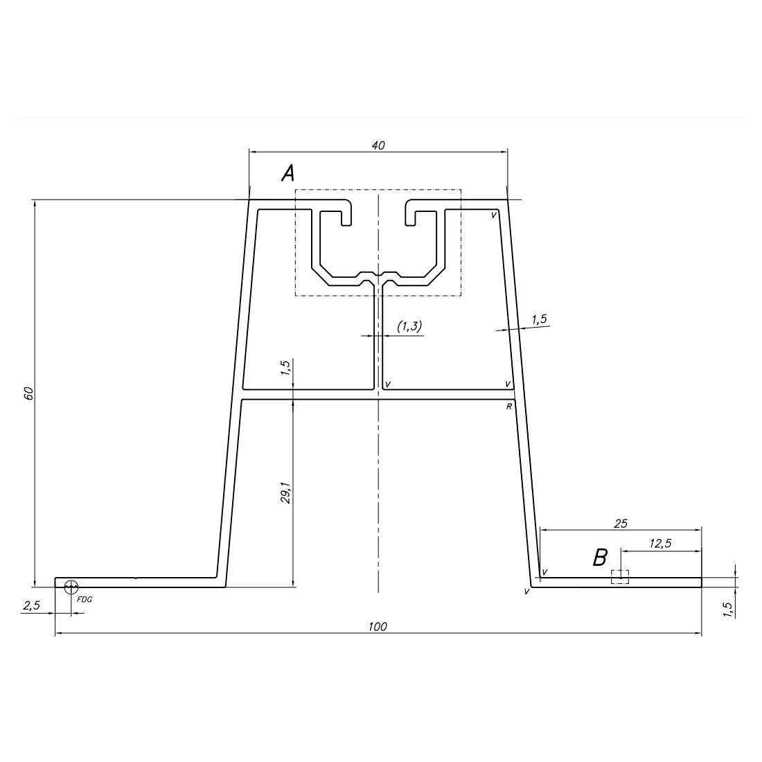 Die Standardlänge der Trapezbrücke beträgt 330 mm. Die Schraubenlöcher werden bei der Montage des Profils auf dem Dach selbst angebracht.