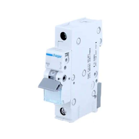 Überstrom-Schutzschalter B 25A 1P 6kA MBN125E HAGER Der Stromkreisunterbrecher ist ein wichtiges Bauteil in einer elektrischen Anlage. Seine Hauptfunktion besteht darin, die Kontinuität eines Stromkreises zu unterbrechen, wenn der Strom den sicheren Wert für den Stromkreis überschreitet.