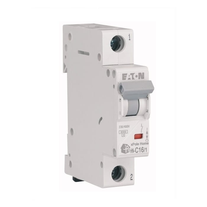 Überstrom-Schutzschalter C 16A 1P 6kA HN-C16/1 xPole Home 194831 EATON schützt die elektrische Anlage vor Überlastung und Kurzschluss.