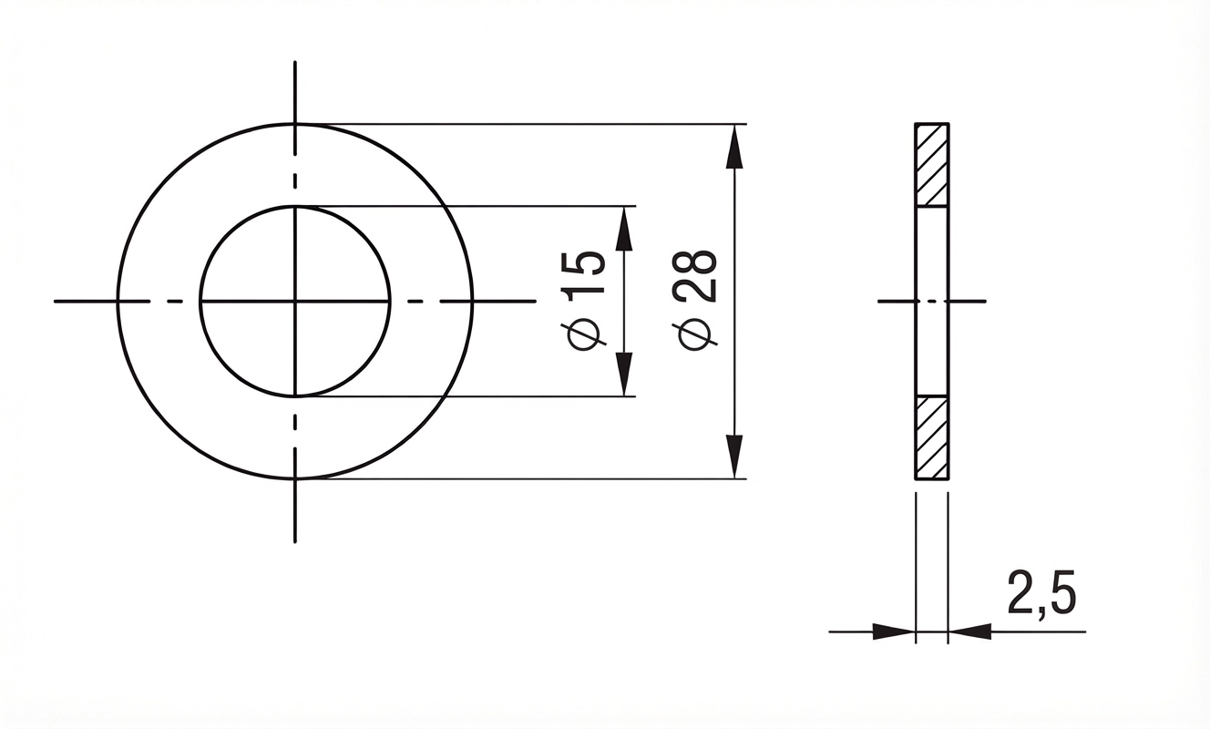 - Norm: DIN 125 (Ersatz für ISO 7089/7090)