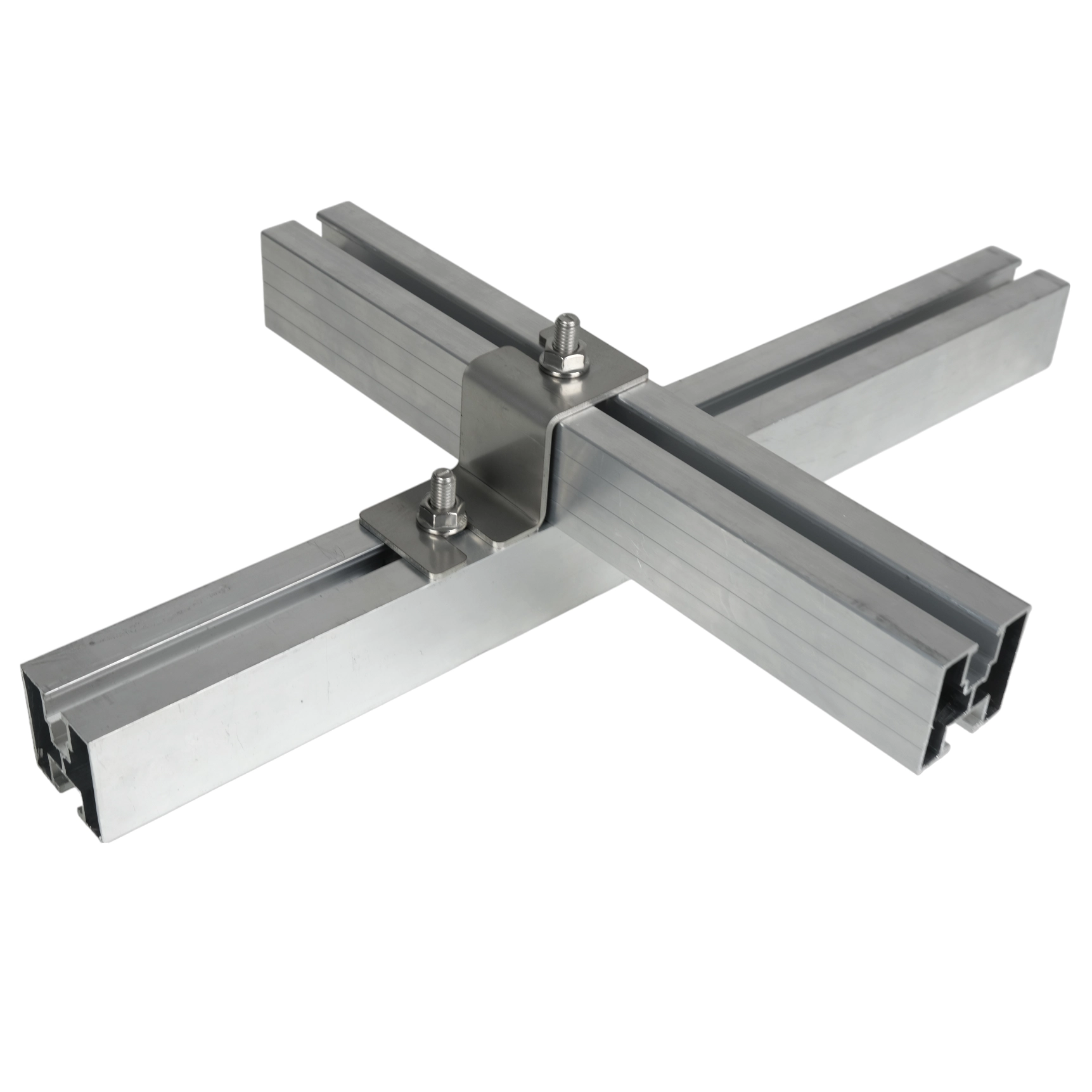 Der 44,5x40 mm große Querbügel aus langlebigem A2 (304) Edelstahl garantiert eine dauerhafte und korrosionsbeständige Verbindung von Profilen in Photovoltaikanlagen.