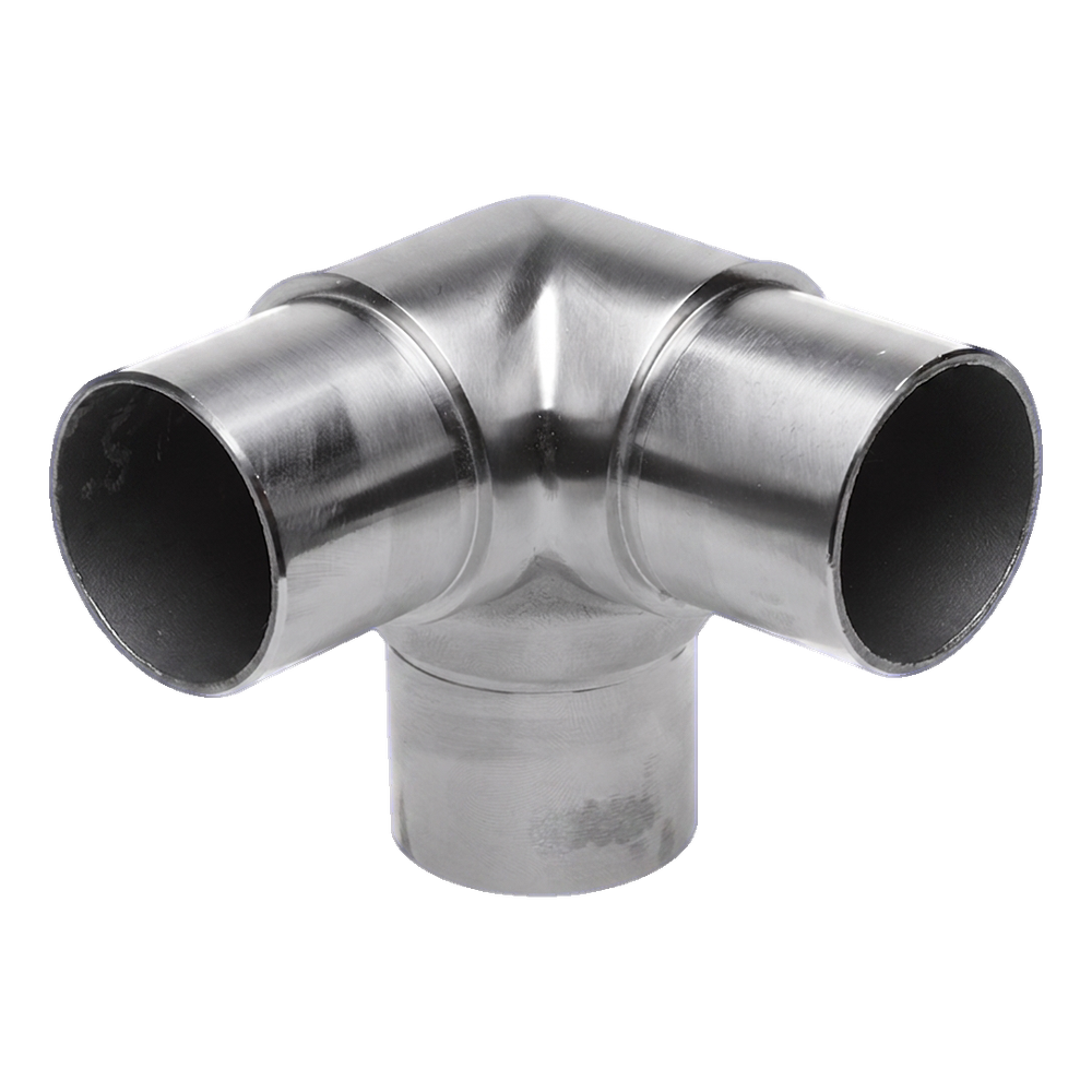 Verbinder aus Edelstahl AISI 304 mit satinierter Oberfläche, was hohe Korrosionsbeständigkeit und elegantes, mattes Aussehen gewährleistet, das perfekt mit modernen Edelstahlgeländern harmoniert. Die Montage erfolgt durch Kleben mit anaeroben Klebstoff — die Verbindung ist von außen unsichtbar, was saubere, professionelle Ästhetik ohne sichtbare Schweißnähte oder Schrauben garantiert.