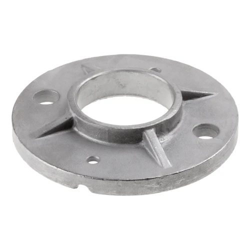 Verstärkte Geländerpfosten-Grundplatte zum Schweißen für die dauerhafte Montage von runden Pfosten mit Durchmesser 48,3 mm. Dank vier Verstärkungsrippen gewährleistet sie hohe Stabilität und Festigkeit der gesamten Geländerkonstruktion und eliminiert das Risiko von Spiel oder Verformungen an der Verbindungsstelle zwischen Pfosten und Untergrund.