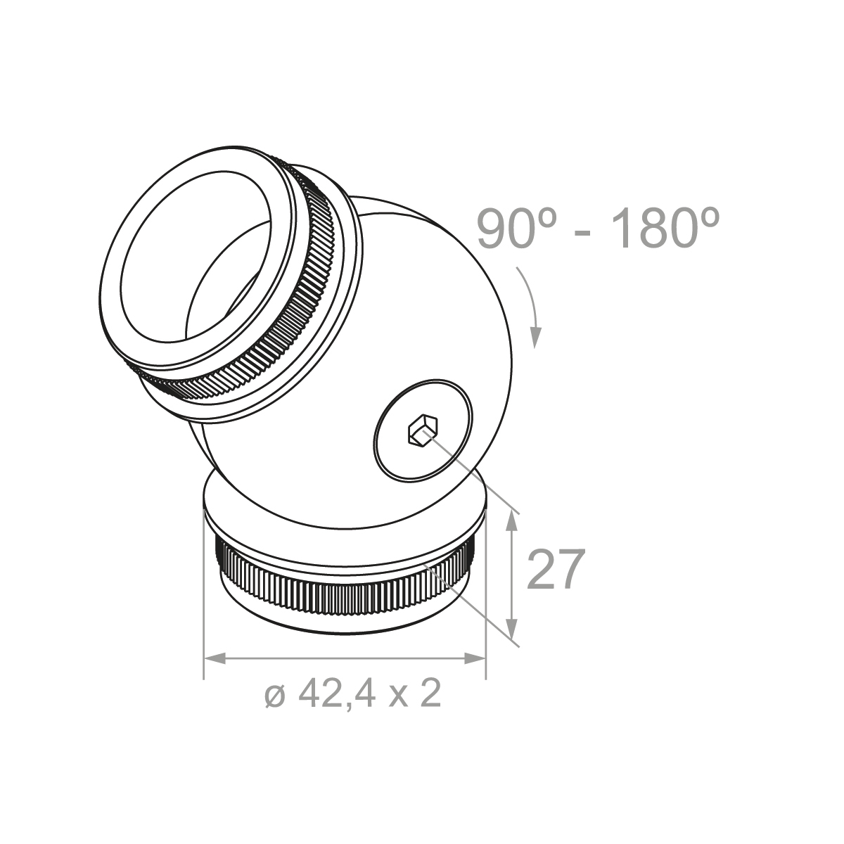 Verstellbare Kugelgelenkverbindung 90°–180° für Rohr ø 42,4 mm – Edelstahl AISI 304 satiniert