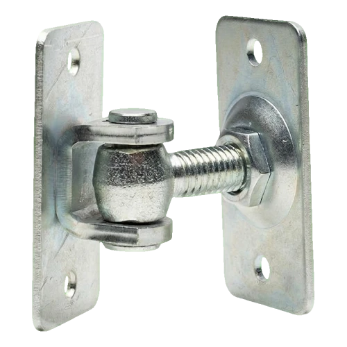 Verstellbares Scharnier M12 mit Stahlgewindeschraube ist ein robuster und praktischer Beschlag für die Montage von Pforten und Toren. Die beidseitig schraubbare Konstruktion eliminiert die Notwendigkeit des Schweißens — es genügt, beide Montageplättchen an Pfosten und Torflügel zu schrauben, was die Installationszeit auf der Baustelle erheblich verkürzt.