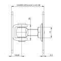 Das Kugelgelenk des Scharniers ermöglicht Verstellung der Torflügelposition im Bereich 42–58 mm, wodurch präzise Einstellung der Pforte oder des Tores auch bei geringfügigen Montageabweichungen möglich ist. Die zulässige Belastung pro Scharnierpaar beträgt 35 kg pro Torflügel, was für Standard-Zaunpforten und leichte Tore ausreichend ist.