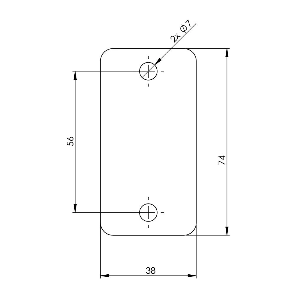 - Abmessungen der Grundplatte (Montageplättchen): 74 × 38 mm