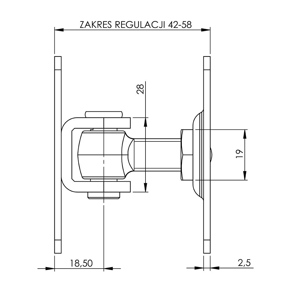 - Nachträgliche Verstellung — der Bereich 42–58 mm ermöglicht Korrektur der Torflügelposition ohne Demontage