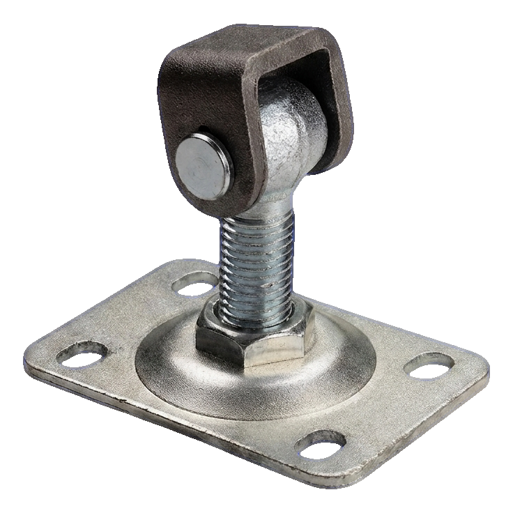 Die Gewindeschraube M20 ermöglicht eine stufenlose Höhenverstellung des Bandes über die Mutter. Dies ist besonders nützlich, wenn sich der Torflügel mit der Zeit absenkt oder wenn Temperaturschwankungen zu Kontraktion und Expansion der Metallkonstruktion führen. Es genügt, die Mutter zu drehen, um die korrekte Einstellung wiederherzustellen — ohne das Tor demontieren zu müssen.