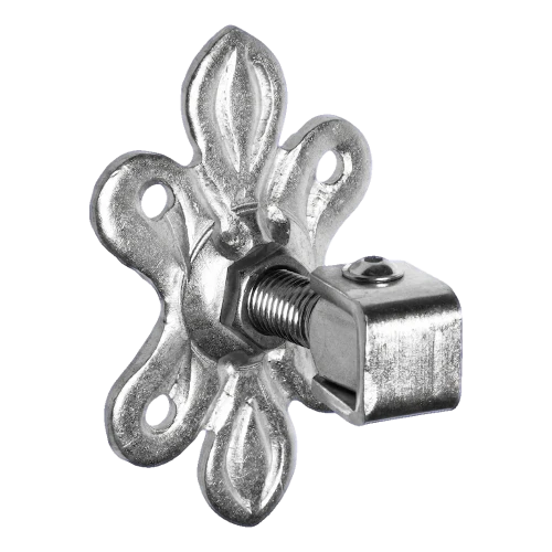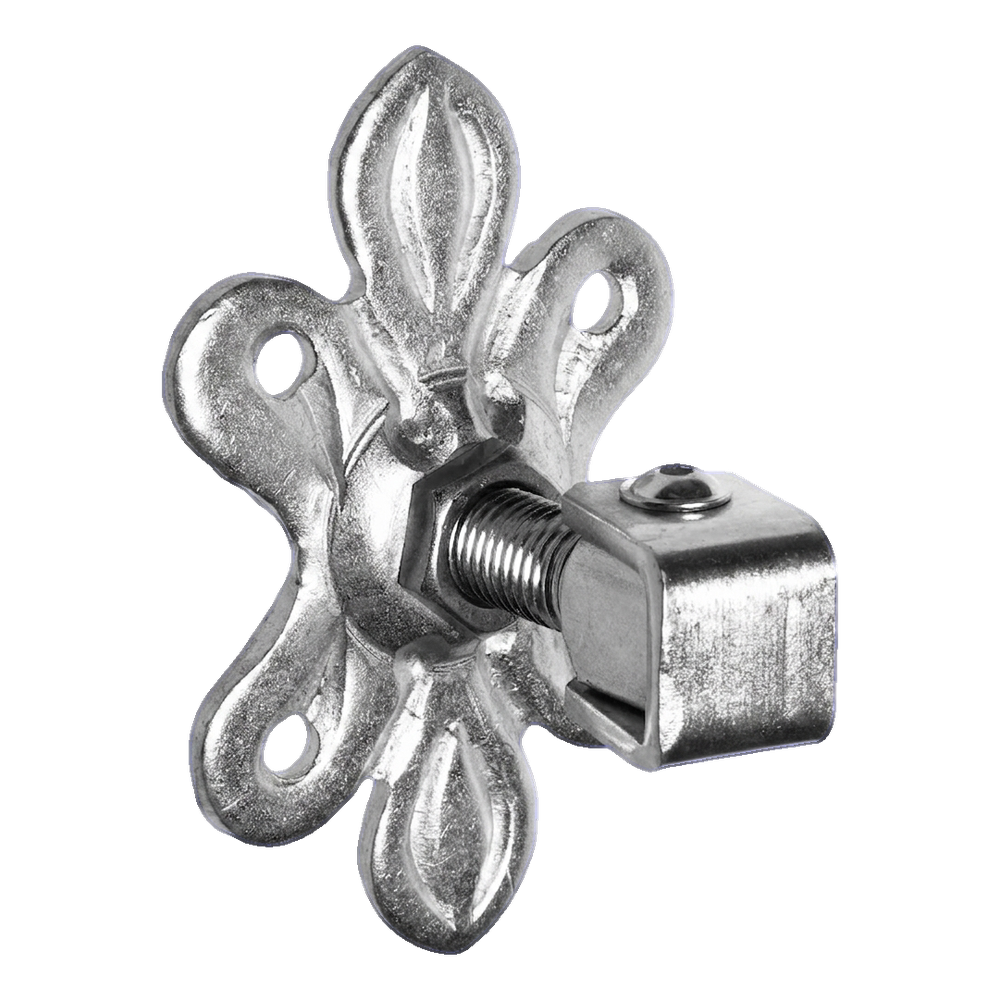 Die Zierplatte in Form einer heraldischen Lilie verleiht dem Band einen ästhetischen, dekorativen Charakter – ideal für Tore und Pforten, wo nicht nur Haltbarkeit, sondern auch das Aussehen der Beschläge zählt. Vier Befestigungsöffnungen in der Platte sorgen für eine stabile und gleichmäßige Lastverteilung auf der Pfosten- oder Flügeloberfläche.