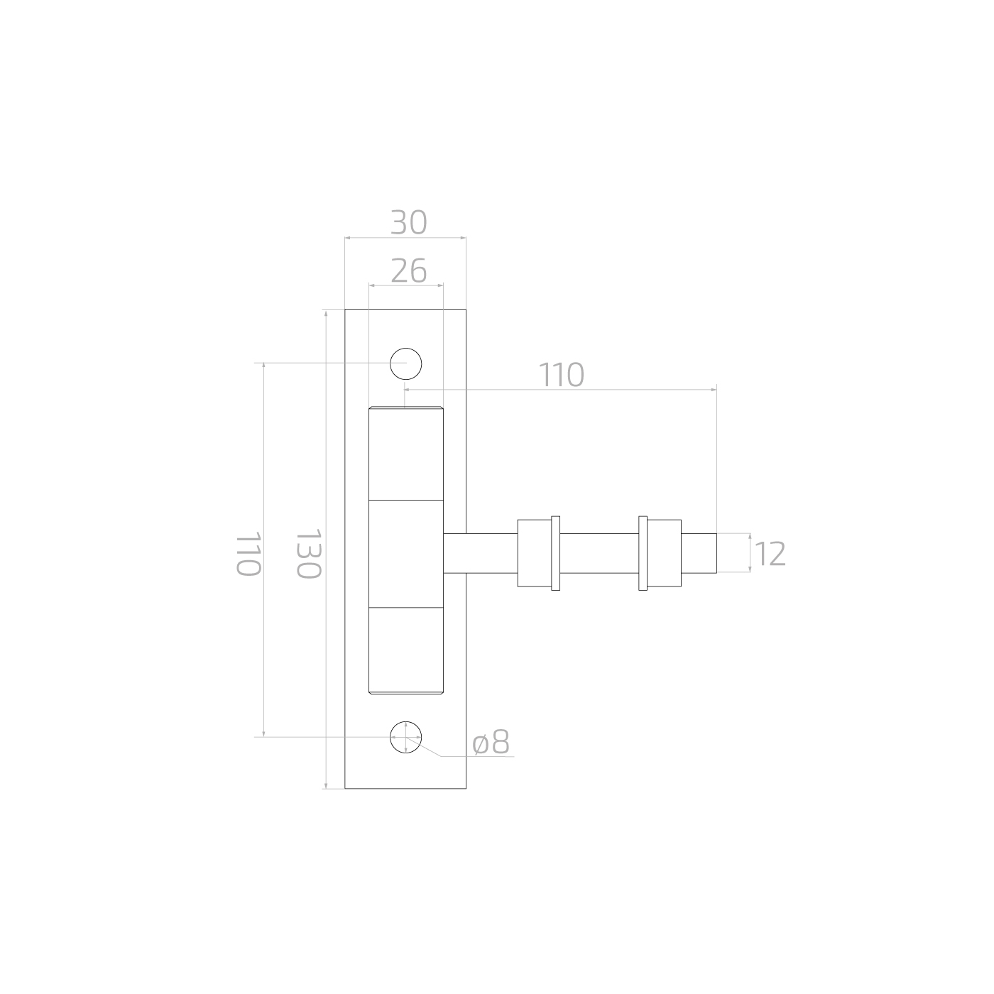 Das rechteckige Schild mit zwei Montagelöchern (Lochabstand 110 mm) ermöglicht eine schnelle und sichere Verschraubung am Pfosten. Die Verstellung erfolgt intuitiv, ohne Demontage — es genügt, die Mutter am M12 Stift zu lösen oder anzuziehen.