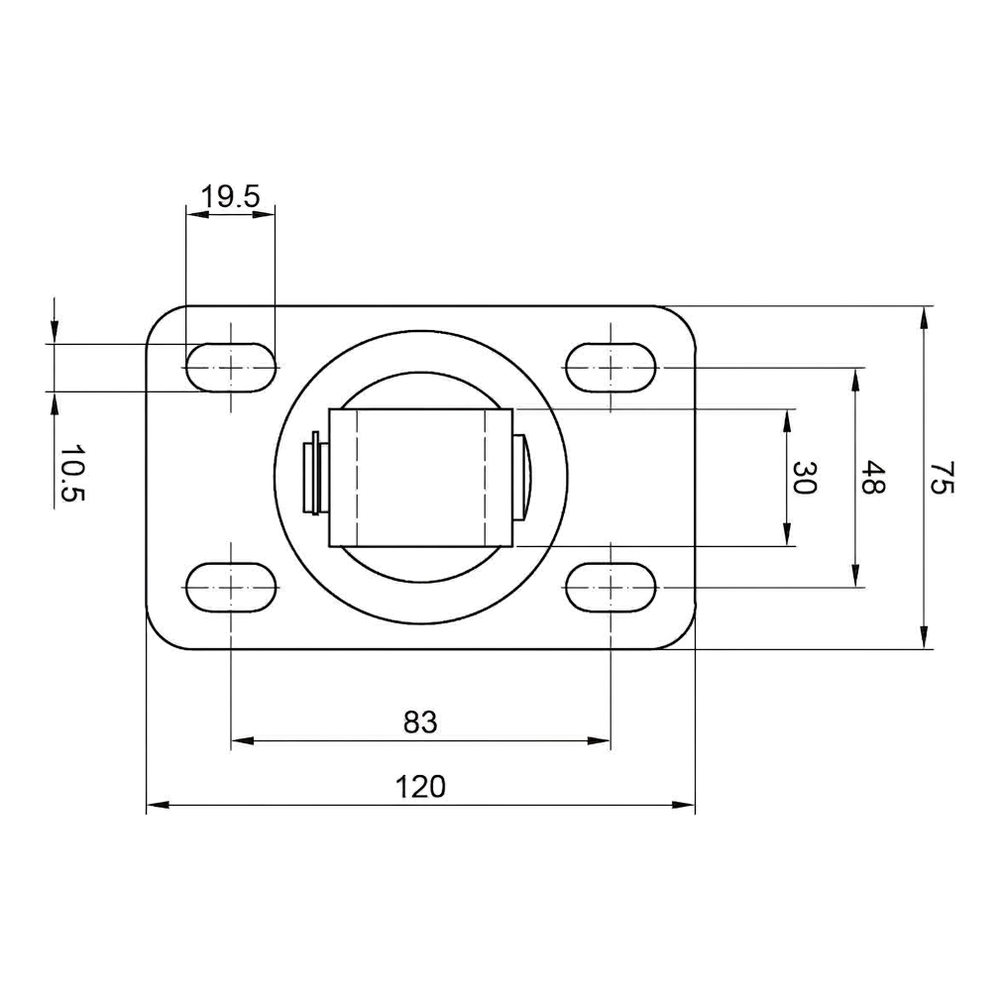 - Lochabstand der Montagelöcher: 83 × 48 mm (zwischen den Achsen)