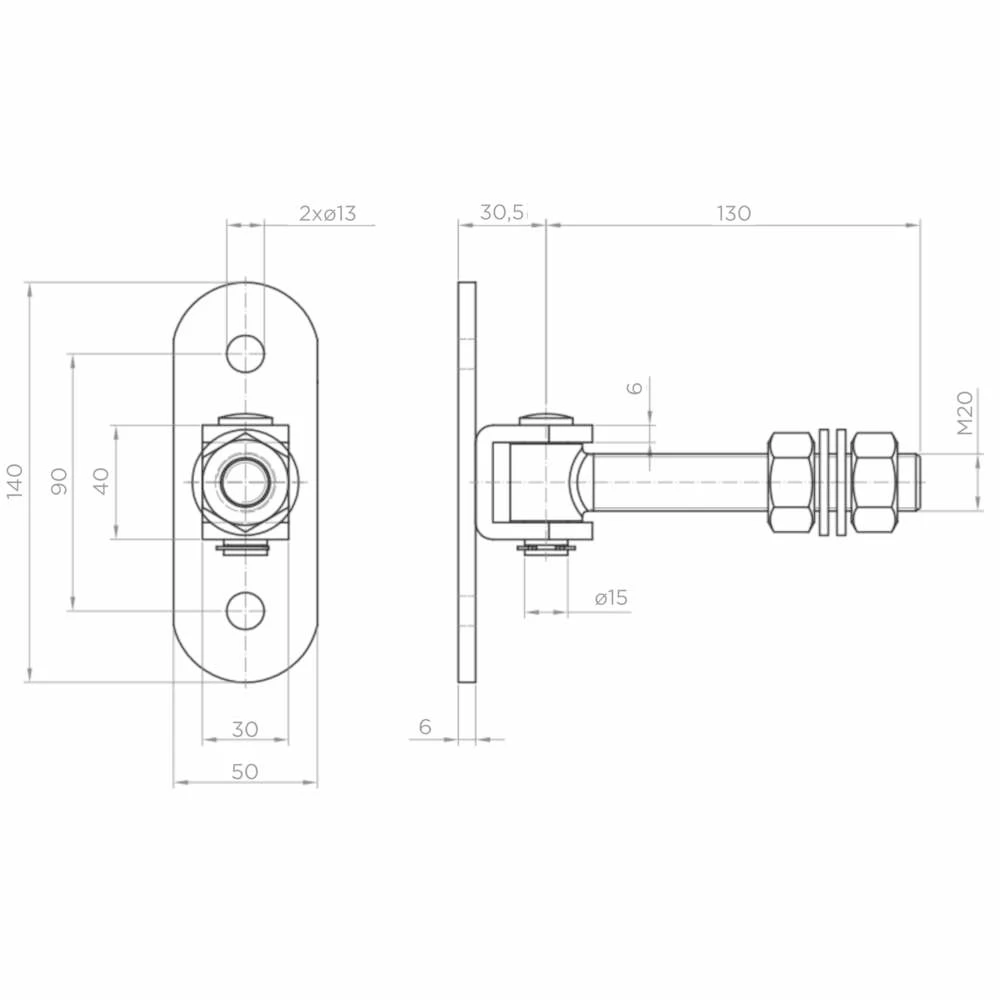 Das verstellbare Scharnier M20 mit Schild 140×50 mm ist ein robustes Beschlagelement für die Montage von Flügeltoren und Pforten. Die Konstruktion mit M20-Gewinde ermöglicht eine präzise Justierung der Flügelaufhängung jederzeit – sowohl nach Abschluss der Montage als auch während des Betriebs, z.B. bei Durchhängen der Konstruktion oder thermischen Verformungen des Metalls bei extremen Temperaturen.