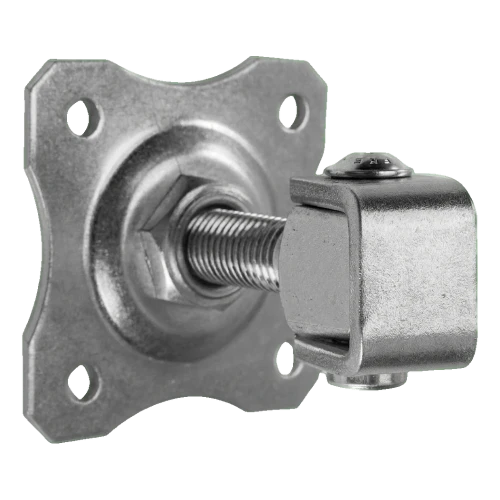 Verstellbares Stahlscharnier mit Zierschild M20 für die Montage von Flügeltoren und Pforten. Dank des M20-Gewindes mit Einstellmutter ermöglicht es eine präzise Einstellung des Torflügels zu jedem Zeitpunkt — sowohl bei der ersten Montage als auch während des Betriebs, z.B. bei Durchhängen der Konstruktion oder thermischen Verformungen des Metalls in der Winterzeit.