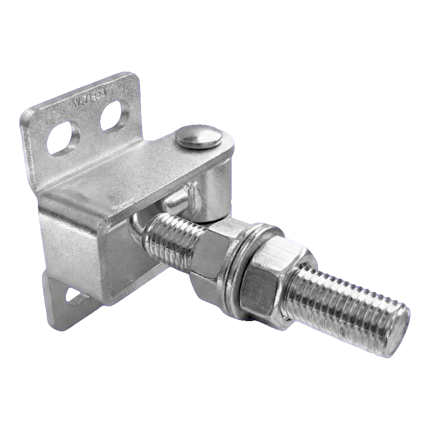Das M16-Gewinde garantiert eine starke und stabile Verbindung, geeignet für schwere Torflügel. Die Montageplatte mit 4 Befestigungslöchern (Langlöcher) ermöglicht eine solide Befestigung am Zaunpfosten, und ihre längliche Form erleichtert die Positionskorrektur während der Installation.