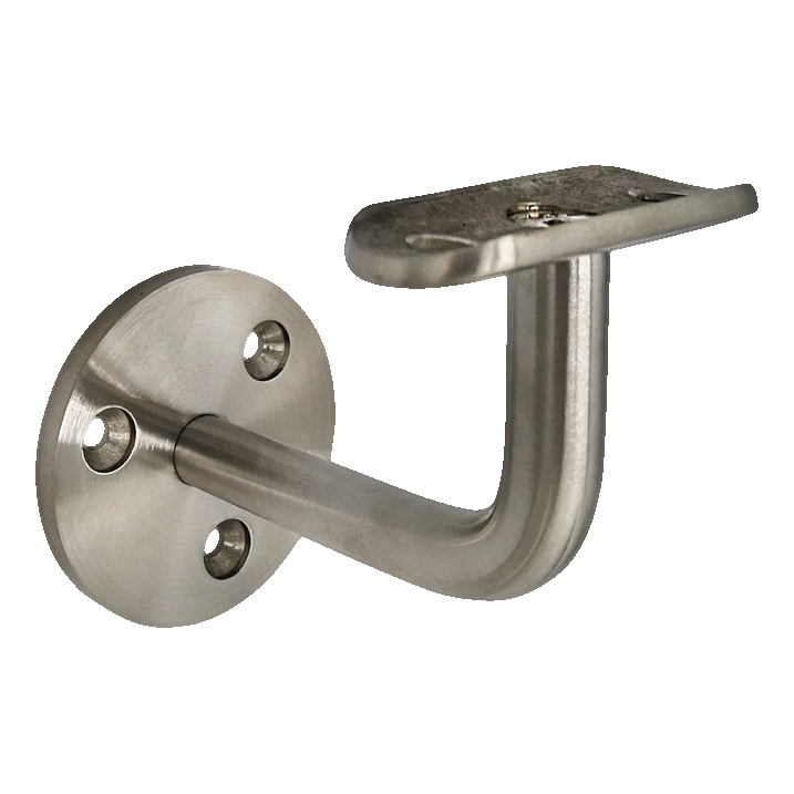 Die Montagescheibe mit drei Bohrungen ermöglicht eine sichere Befestigung an der Wand, und das profilierte obere Blech passt präzise zum Handlaufrohr. Die satinierte Oberflächenausführung verleiht dem Ganzen ein modernes, elegantes Aussehen und ist äußerst pflegeleicht — die meisten Verschmutzungen lassen sich mit einem trockenen, weichen Mikrofasertuch entfernen, hartnäckige Flecken mit einem speziellen Edelstahlreiniger.