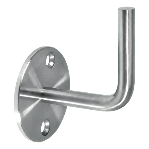 Die Halterung wird mittels zwei Befestigungsbohrungen in der runden Rosette an der Wand montiert, und der Handlauf wird durch Schweißen am vertikalen Stabarm befestigt. Diese Lösung garantiert maximale Steifigkeit und Stabilität der gesamten Geländerkonstruktion, was für die Sicherheit der Nutzer von entscheidender Bedeutung ist.