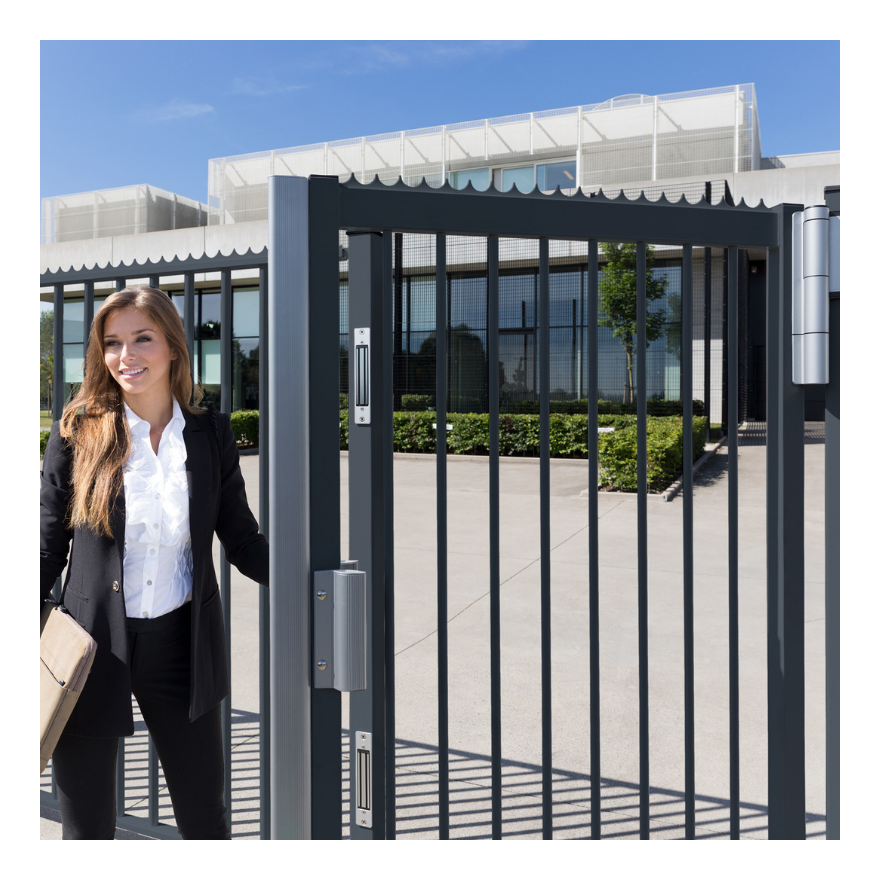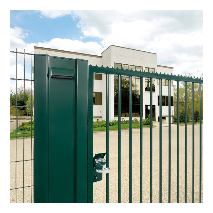 - Ästhetisches Aussehen — fügt sich diskret in den Zaun ein, ohne die Umgebung zu verunstalten