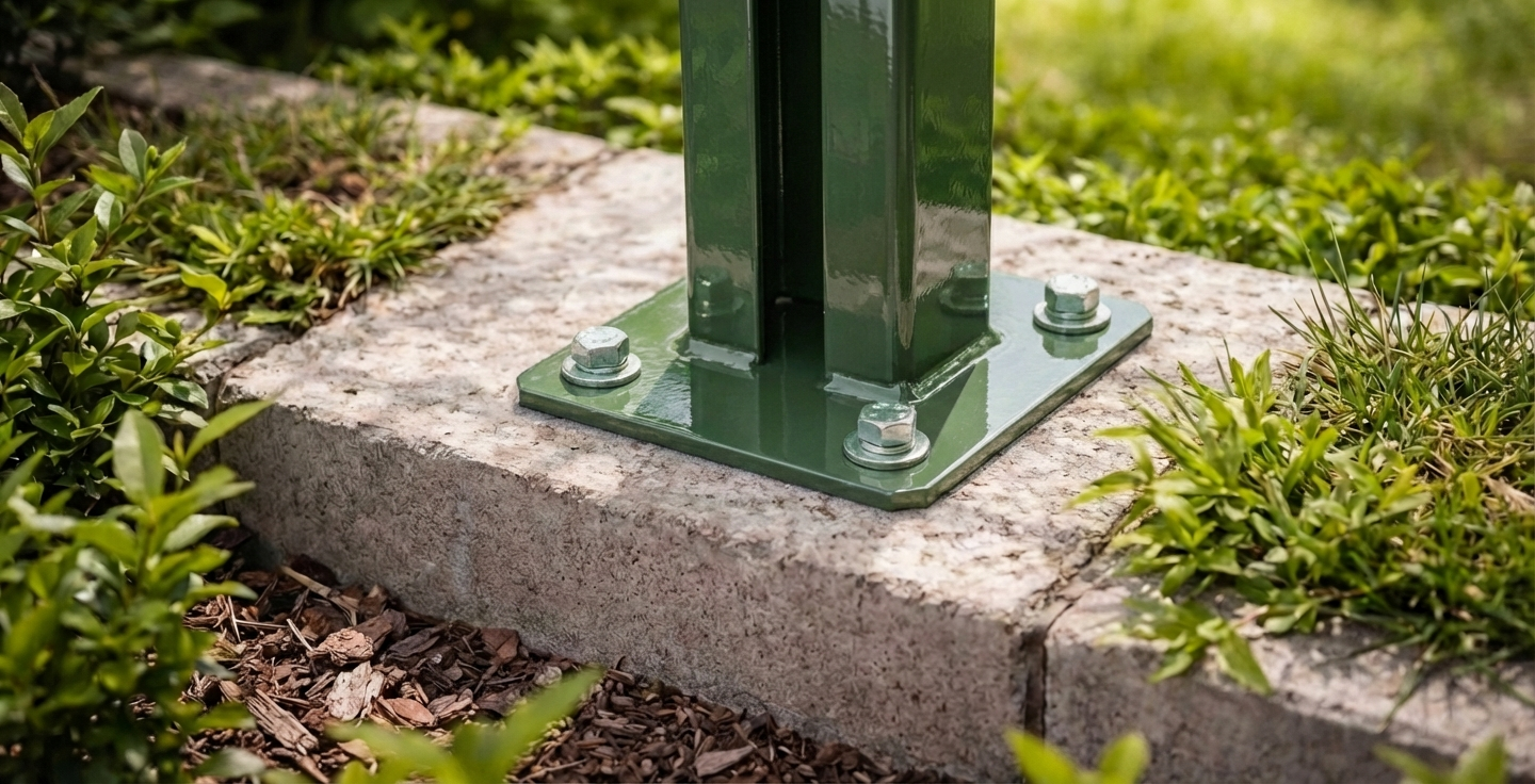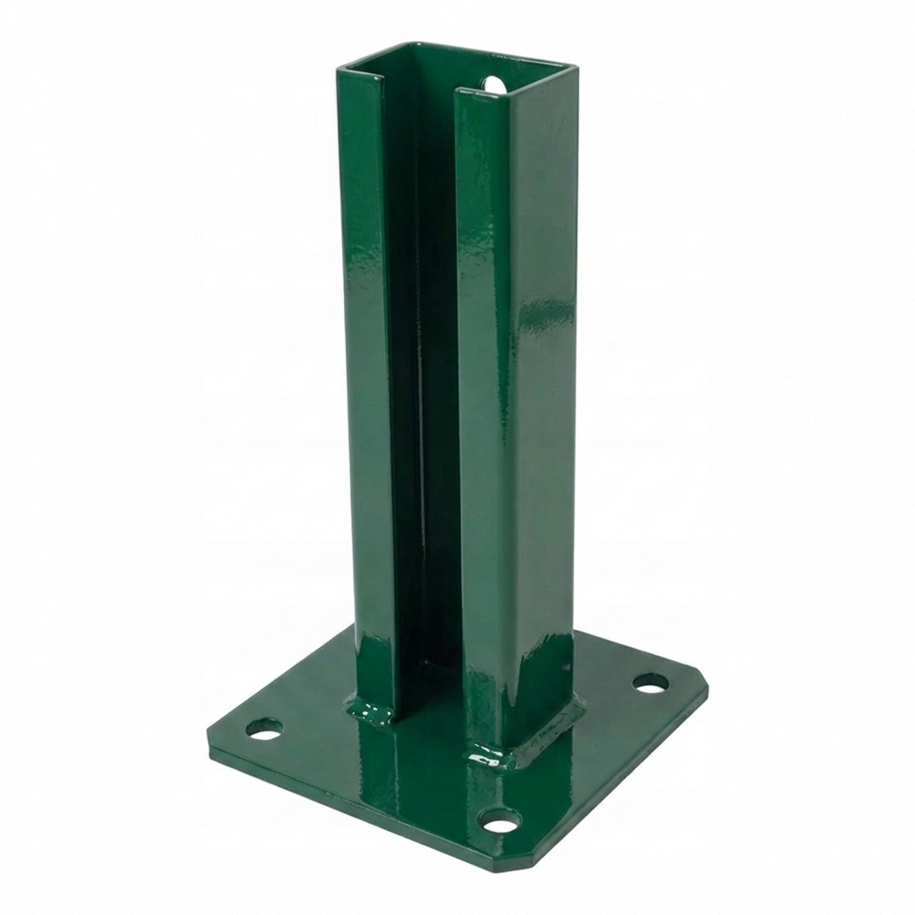 Der Pfostenfuß ist kompatibel mit Standard-Zaunpfosten mit einem Profil von 60×40 mm, die in den meisten Panelzaunsystemen verwendet werden. Die ideale Lösung für Installationsfirmen, die Zäune auf fertigen Fundamenten und Betonsockeln im Außenbereich montieren – selbst unter schwierigen Witterungsbedingungen.