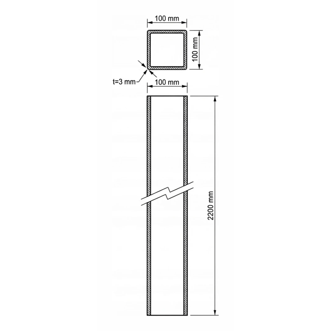 Der Pfosten 100×100×3 mm ist eine verstärkte Version für anspruchsvolle Projekte, bei denen sowohl Solidität der Konstruktion als auch Ästhetik der Ausführung zählen. Er eignet sich ideal als Element für Palisaden- und Panelzäune um Privatgrundstücke, Gewerbeobjekte und Industriegelände.