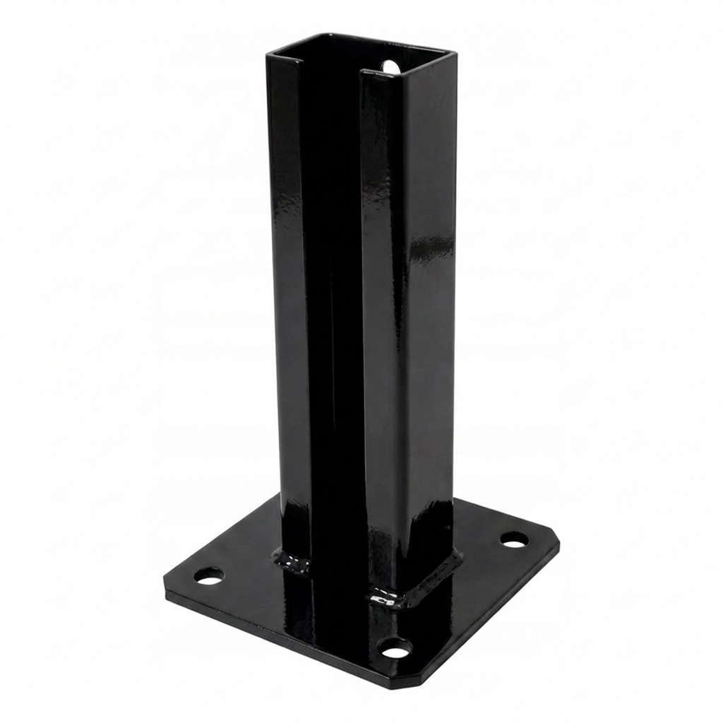 Zaunpfostenfuß 60x40 mm – galvanisch verzinkt und pulverbeschichtet RAL 9005